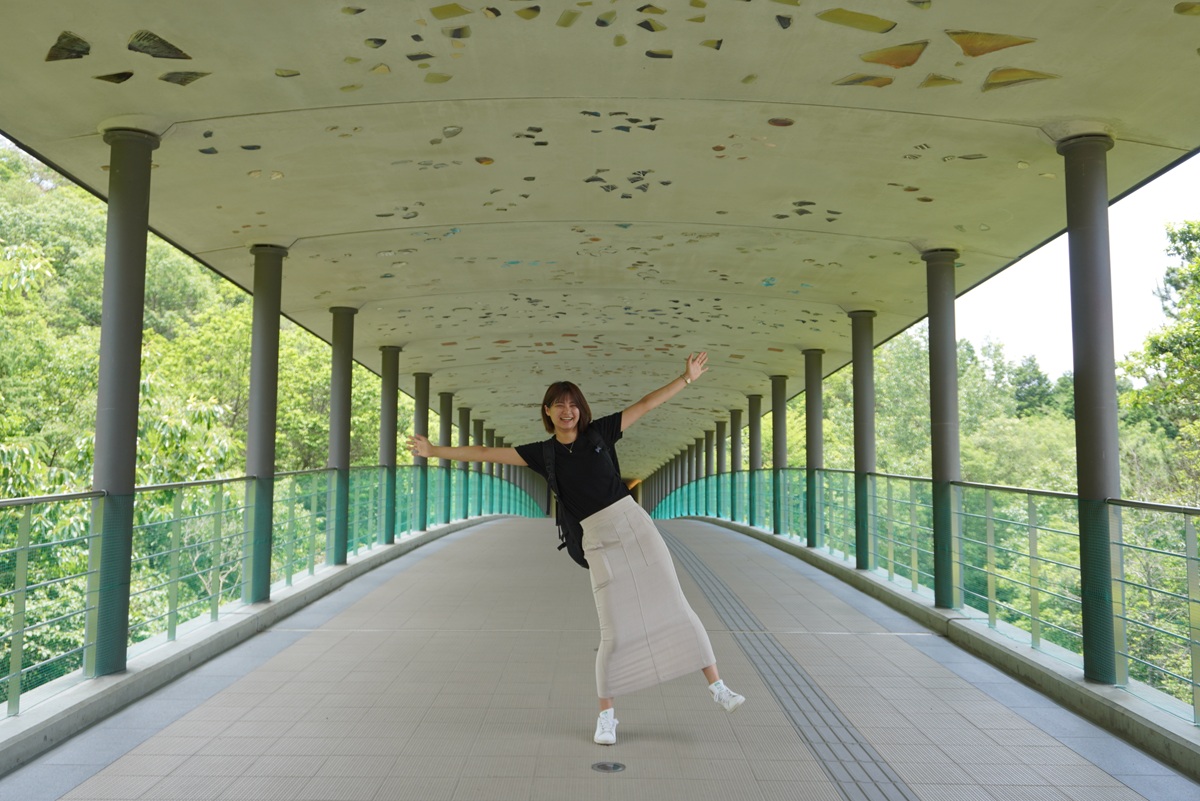 バスに乗車し3分ほど進み、次に訪れたのは陶磁器をテーマにした産業と文化の複合施設「セラミックパークMINO」。多治見市の木「シデコブシ」が自生する山を、建築家の磯崎新さんによって自然の姿を残す形で建築されました。