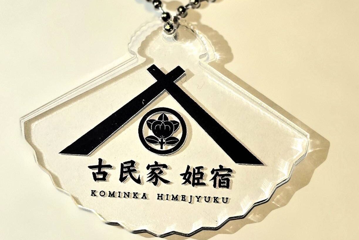 近日オープン予定の古民家姫宿のPRキーホルダー(非売品)の第一弾。商品についてはスタッフにお尋ねください。