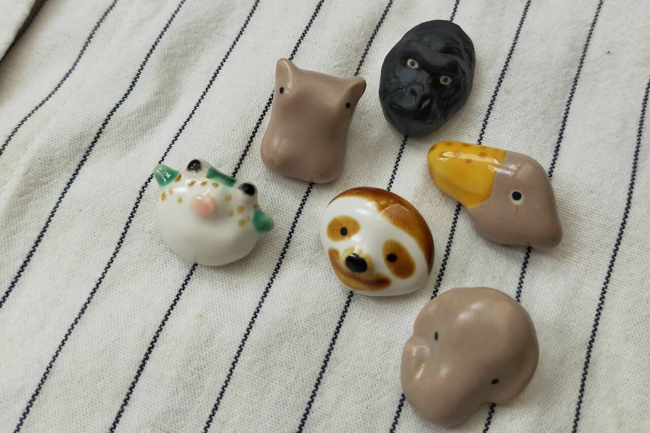⑮美濃焼どうぶつピンバッチ