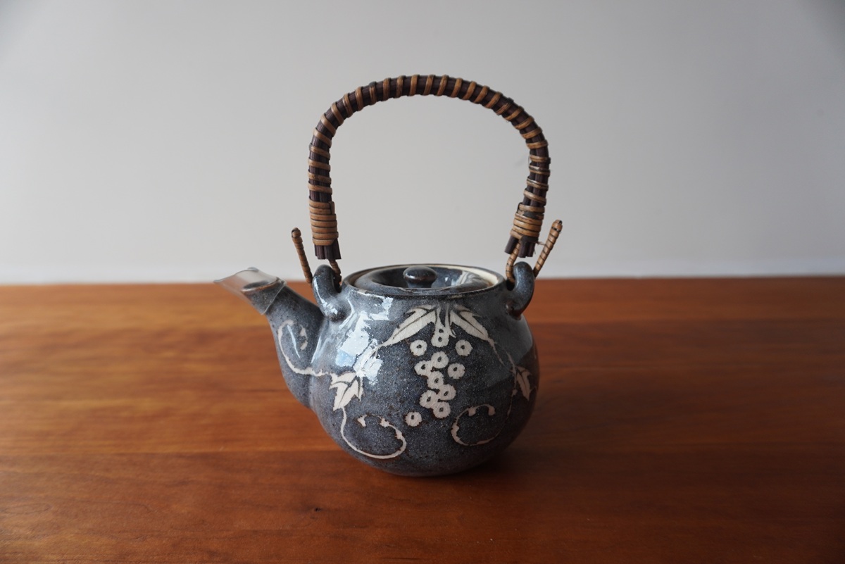 玉山窯の鼠志野、葡萄柄が美しい昔ながらの定番土瓶。