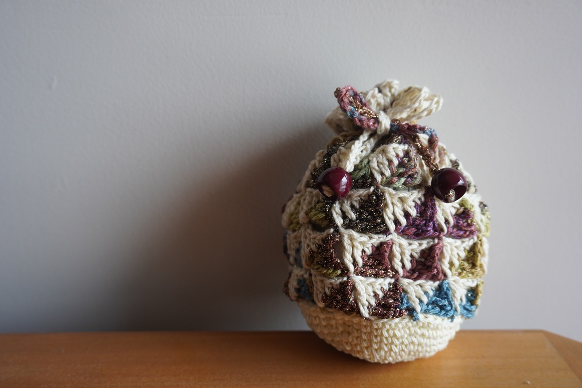 手編みのきんちゃくに、多治見で昔から愛されているやっこ飴を入れた「たじみやげ」です。