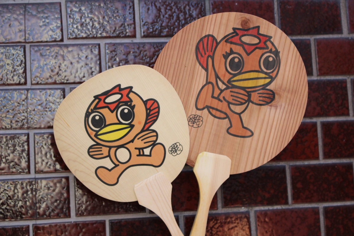 杉の木やヒノキの間伐材を使用した、仰ぐと木の香りがするうながっぱうちわ。