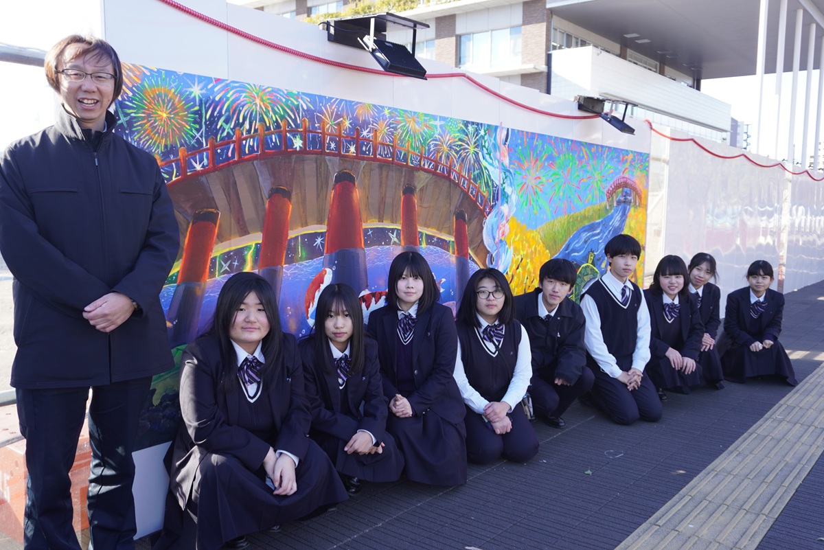 「これほど大きな作品を手がけるのは初めてで、みんなのイメージを一つにまとめるところは大変でした。ですが、描き始めてからは、普段は一人で制作することが多い私たちが、横に並んで同じ作品に向き合い、声を掛け合いながら楽しく仕上げることができました。」と部長の松田さん。