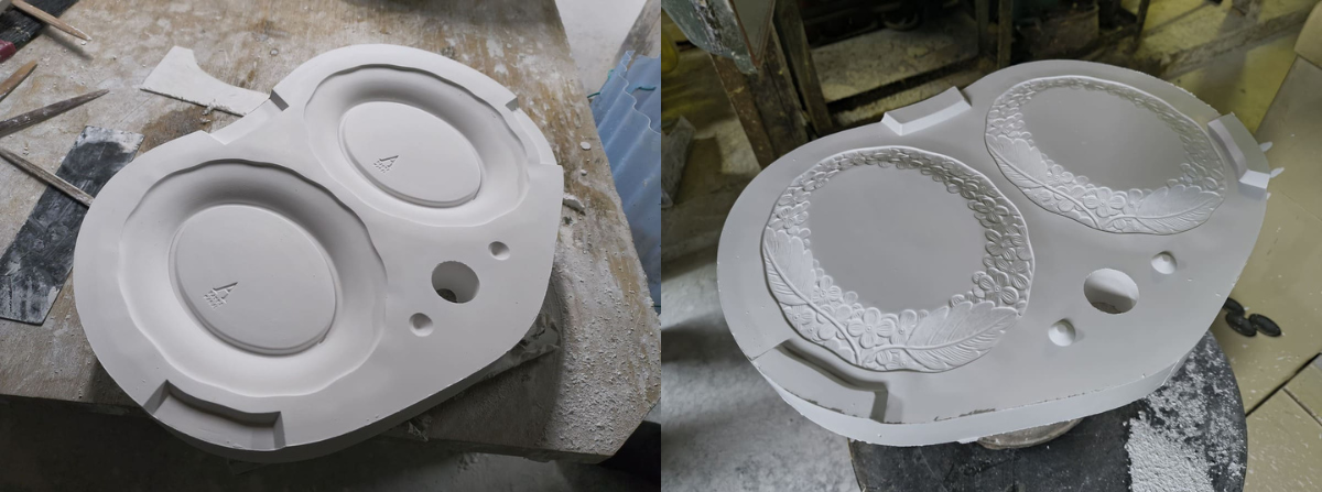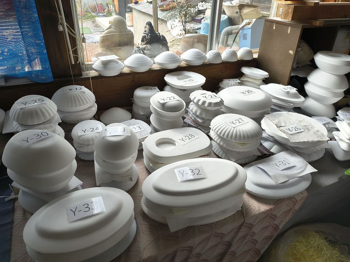 まず始まるのは「原型」づくり。写真や図面をもとに、器の元となる形を作ります。この原形の完成度が最終的な器の仕上がりを左右するため、デザインや寸法はミリ単位で調整されます。これは石膏型づくりの設計図であり、土台となる重要な工程です。