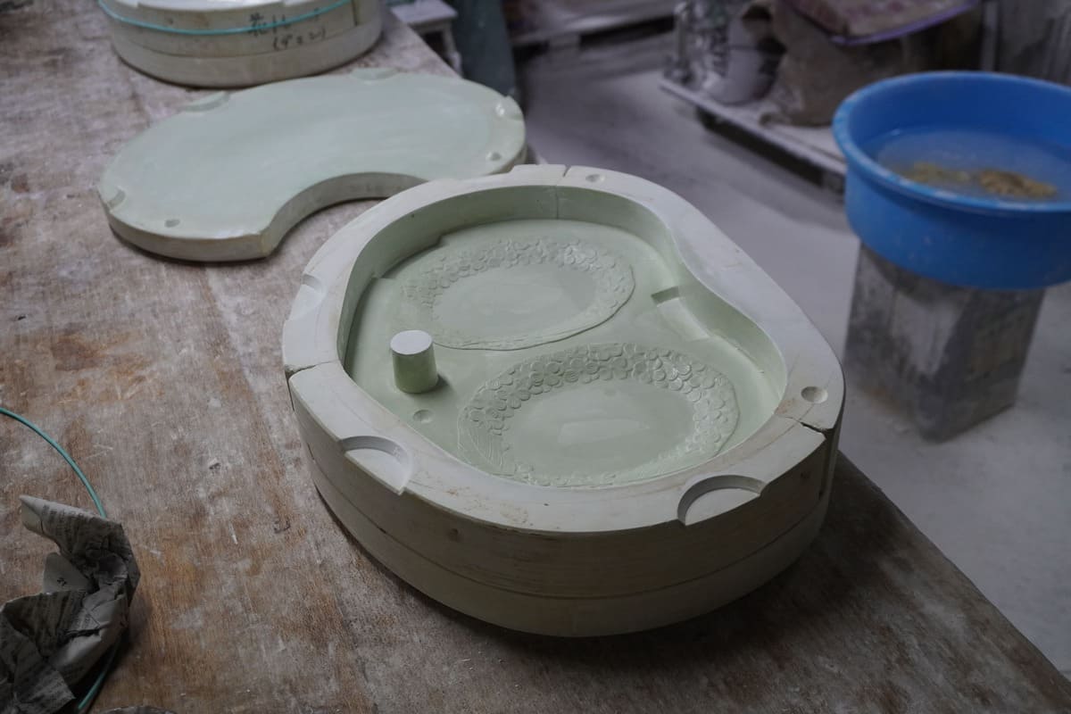 最後に、そのケースに石膏を流し込み「型」ができあがります。こうして完成した型が、窯元や作り手の元へ渡り、器づくりへとつながっていくのです。