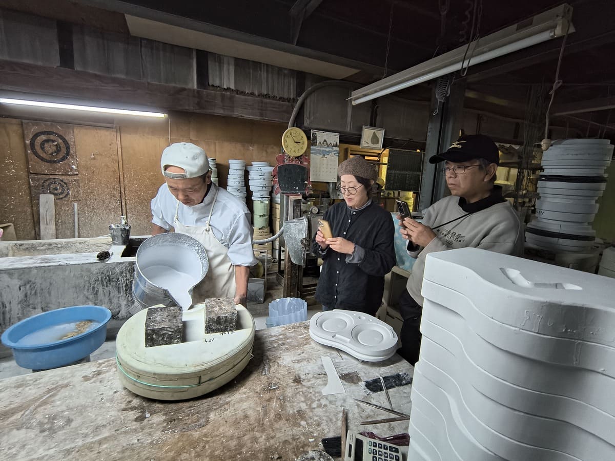 実は、陶器の「型」を専門に手がける工房は、日本全国でもわずか4県にしかないほど。器づくりに欠かせない存在でありながら、その技術を間近で見られる機会は決して多くありません。だからこそ吉川製型所では、「技術を知りたい人には、できるだけ伝えたい」「必要としている人に、ちゃんと知らせたい」という想いから、見学会を開催しています。実際の現場で話を聞き、作業を目の前で見ることで、器づくりの奥行きや美濃焼の魅力をより深く知ることができます。