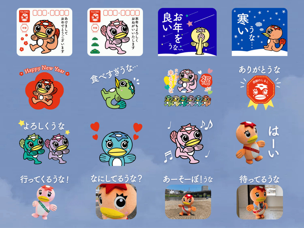 「LINEスタンプが欲しい!」「気軽に年末年始の挨拶に使えたら便利」という声にお応えして作ったこのスタンプ。年賀状モチーフや「Happy New Year」などの言葉に加えて、イラストはもちろん、写真のうながっぱも入った楽しいセットになっています。年末年始のご挨拶に、家族や友達とのやりとりに、ぜひご活用ください。