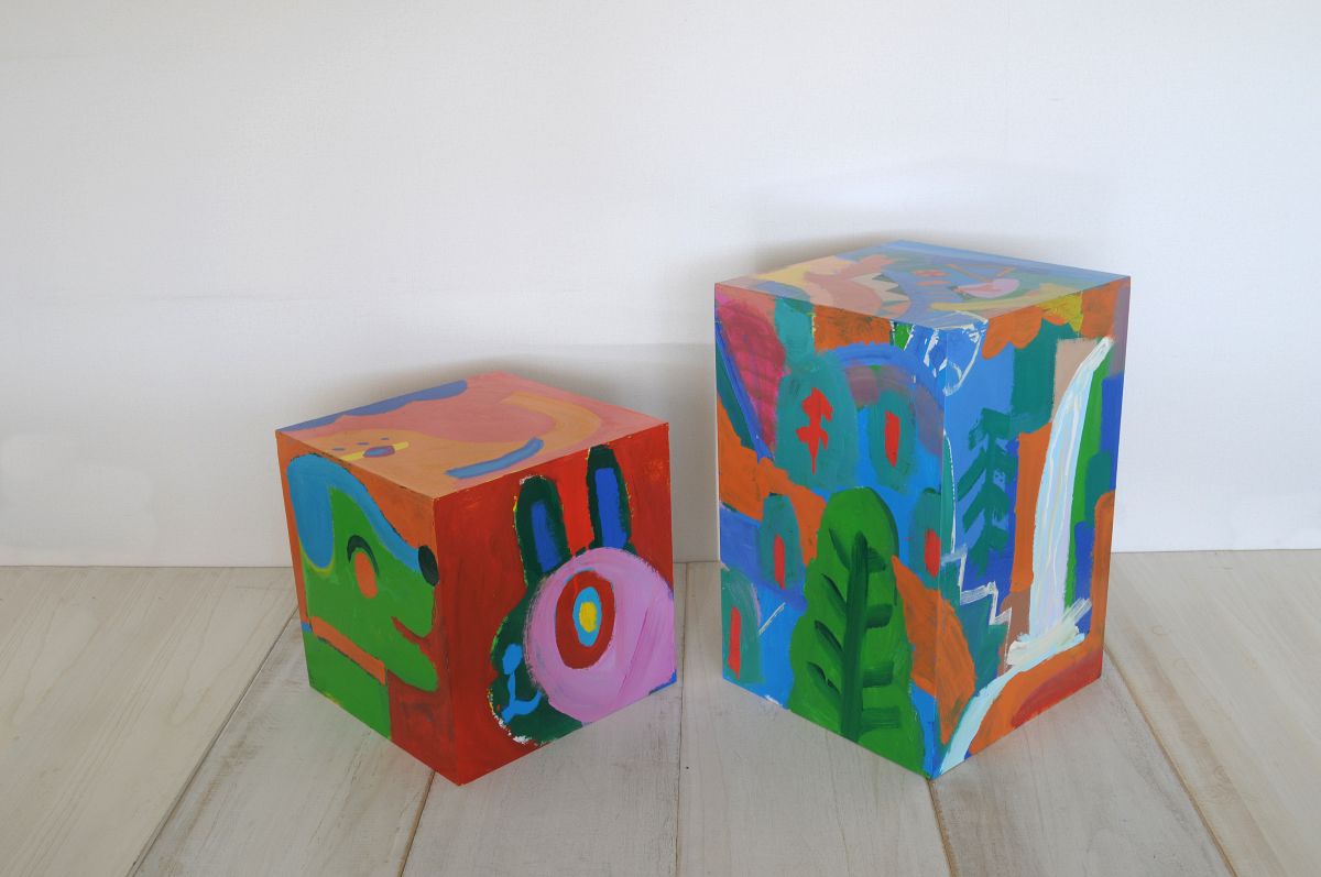 色と形がのびのびと広がり、思わず心がほぐれる有賀さんの世界。ガレリア織部で4回目となる今回は、さらに豊かな表情の作品がそろいます。思わず微笑むような作品をお楽しみください。