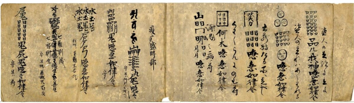仏教が伝来する以前から、日本には山や森、滝といった自然のあらゆるものに神が宿ると考える信仰がありました。仏教が伝わると、神と仏は互いに溶け合い、やがて神は仏の仮の姿であるという思想も生まれました。こういった神仏習合の思想を体現した一つに修験道があります。山伏はその信仰の担い手として、厳しい山岳修行に身を投じました。本展覧会では当地域で活躍した江戸時代の里山伏について古文書を中心に紹介します。
