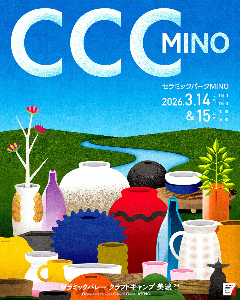 地域の産業や工芸、ものづくりが結び付く地域最大級のクラフトフェア「セラミックバレー クラフトキャンプ美濃 26」(以下、CCC)が、多治見市のセラミックパークMINOで2026年3月14日(土)と15日(日)に開催されます。陶芸、ガラス、木工、飲食やワークショップなどが約230組集結する一大イベントの楽しみ方をお伝えします。