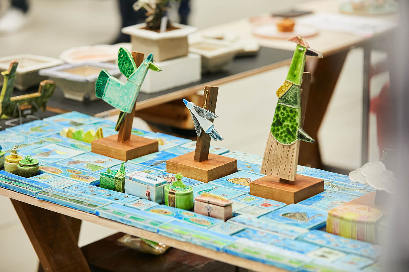毎年、子どもたちにも大人気のタイルワークショップ(株式会社エクシィズ)もオススメ。100種類以上のタイルの中から、 好きな色やかたちを選んでつくるモザイクアートです。また、家庭で使われなくなった陶磁器を回収し、リユース/リサイクル/アップサイクルを行う美濃焼デザイン研究所 MA-RUも参加します。